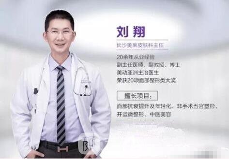 刘翔、男、医学博士、主治医师职务。目前担任长沙美莱皮肤技术院长职务。自1997年起,一直从事整形美容行业,其中对美肤激光领域由于关注重视,拥有20余年相关工作经验。在其工作期间,潜心致力钻研进修皮肤病学、皮肤美容学及中医学,是我国首批把激光美容和中医学二者结合用于整形美容领域上的医生之一。